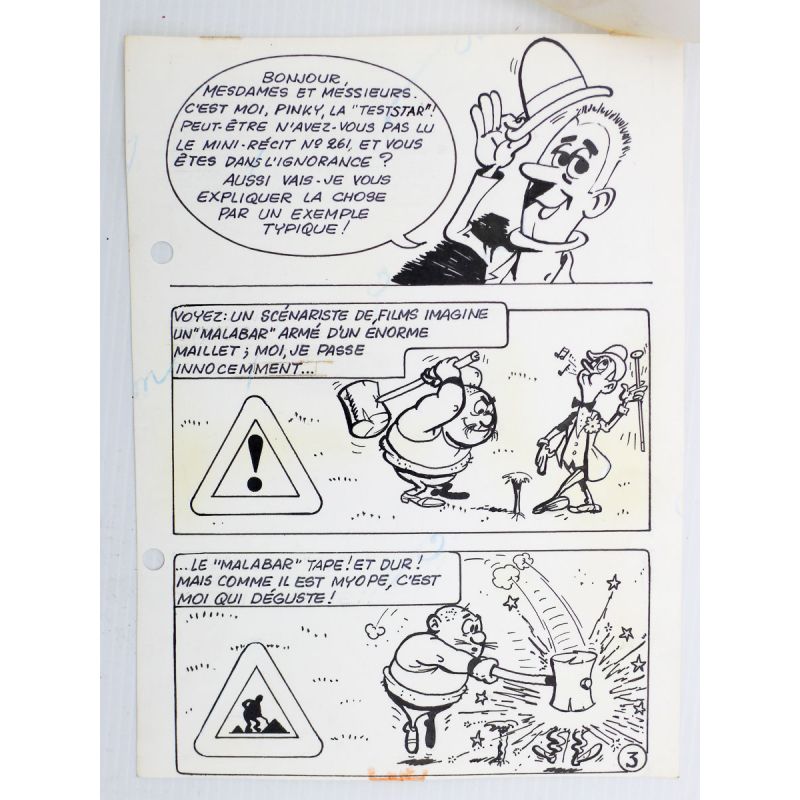 Agrandir l'image Jacques DEVOS a dessiné plein de mini-récits pour Spirou, quel bonheur de retrouver ces pages toutes simples au format 14 x 19 cm des planches originales, accompagnées à chaque fois du calque avec les indications de mise en couleur. Un original de qualité à prix doux. Avec les perforations d'origine, Génial Olivier ayant eu l'idée saugrenue de classer ces planches dans un classeur à 2 anneaux !
