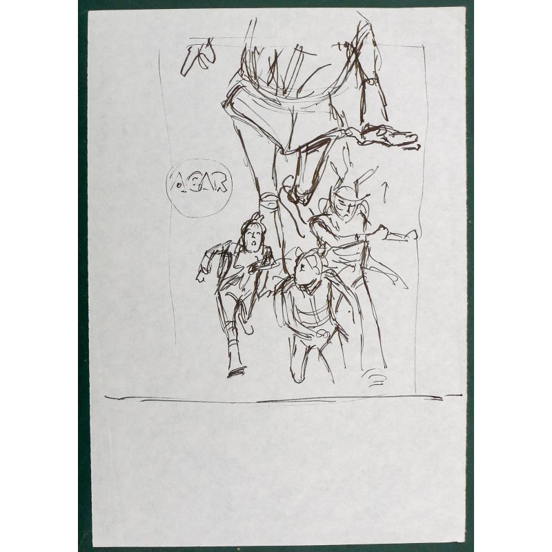 AGAR est une des séries de science-fiction les plus poétiques jamais dessinées. GIGI a réalisé trois albums, et de très nombreux crayonnés préparatoires pour les couvertures (feutre, encre, crayon selon les cas). Ici un format A5 avec un long texte manuscrit au verso.
