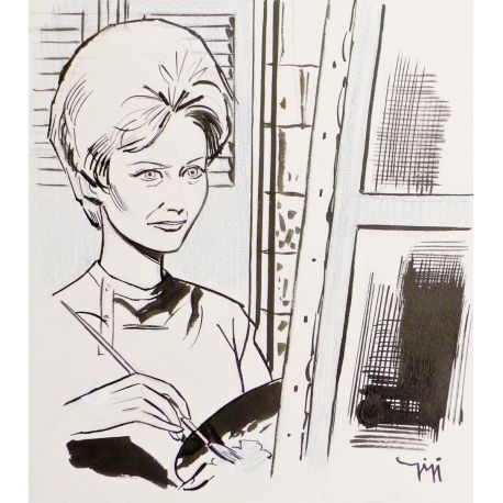 Sur feuille A4, dessin à l'encre de Chine de Robert GIGI, le créateur de Scarlett Dream, mais aussi d'Ugaki le samourai et Agar. Paru dans le magazine pour jeunes filles, J'ai 15 ans, pour illustrer un roman. Signé ou cachet d'atelier de l'artiste.